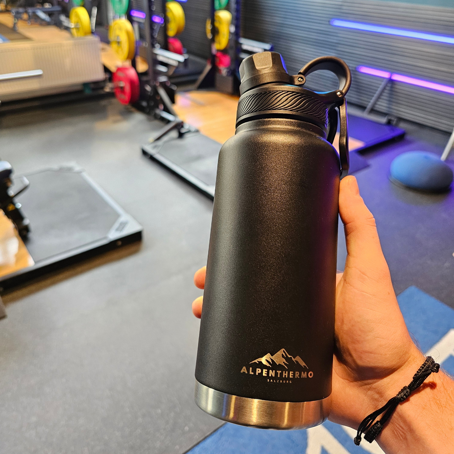 Die AlpenThermo ist auch perfekt fürs Training geeignet. Ihre robuste, doppelwandige Konstruktion hält Ihr Getränk stundenlang auf der idealen Temperatur. Dank der schweißfreien Oberfläche und des praktischen Aufhängers bleibt sie in Ihrer Tasche immer trocken und lässt sich leicht aufhängen – so können Sie sich bei jedem intensiven Training auf sie verlassen.